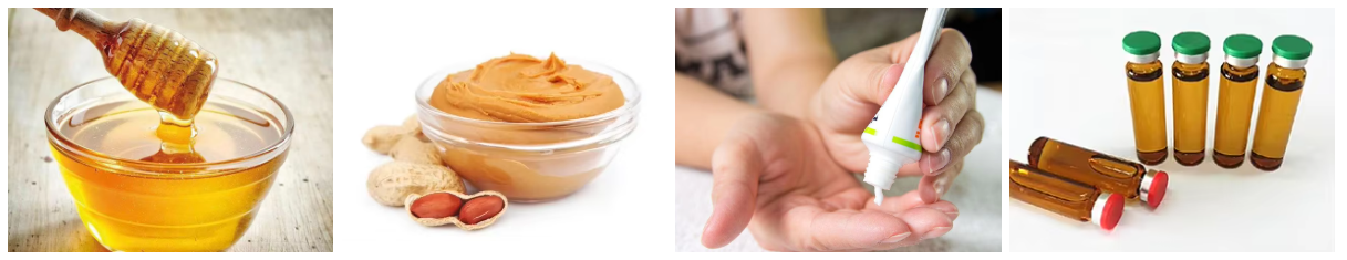Fruit juice, sauce, cheese, nutrient liquid, chocolate, syrup, honey, ketchup, milk, beverage, ice cream, yogurt, etc.